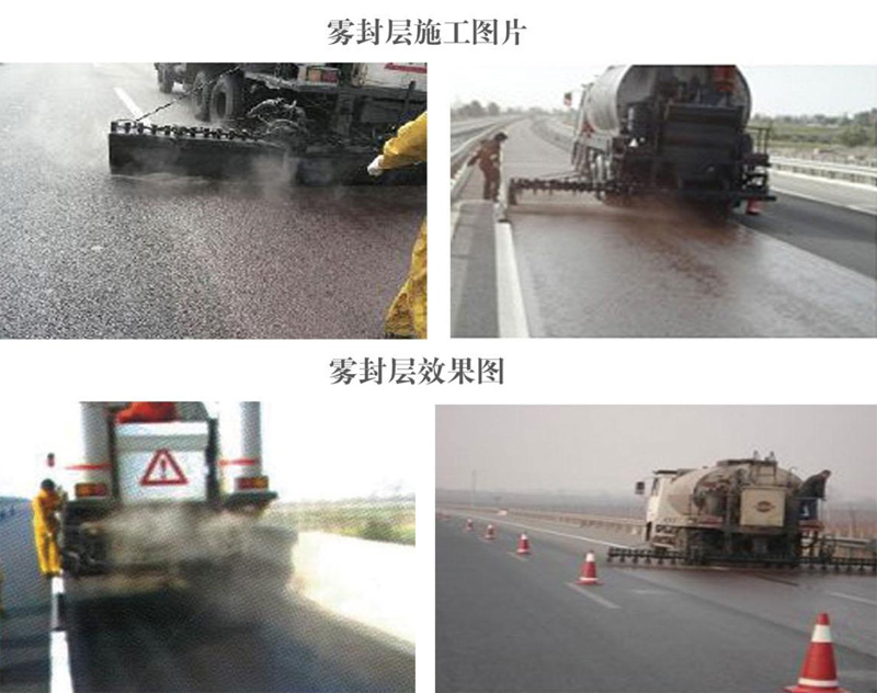 如何對以上的這些缺陷進行處理,方法很多,如微表處、薄罩面等,都各有優缺點,但總結起來,在這一階段,更有效的方法是"霧封層技術”即"FOG SEAL" , 且它的費用非常的低廉。經霧封層后,由于所用材料流動性比較大,可滲入到骨料縫中去,可流入到裂縫中去,對路面“輸血”,從而恢復路表瀝青粘附力,填補微小裂縫和空隙,防止路表水下滲,將路面性能維持2~ 3年時間,推遲造價更高的養護工程,提高了道路的經濟效益。